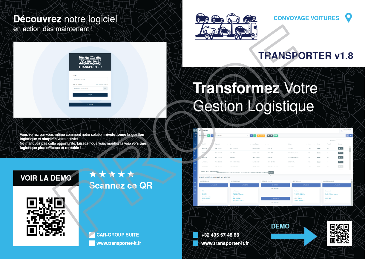Dans cette nouvelle version de la brochure, vous découvrirez les toutes dernières fonctionnalités et améliorations que nous avons apportées à notre application. Vous y trouverez des informations complètes sur la gestion des transports, l'entreposage, le reporting, et bien plus encore.